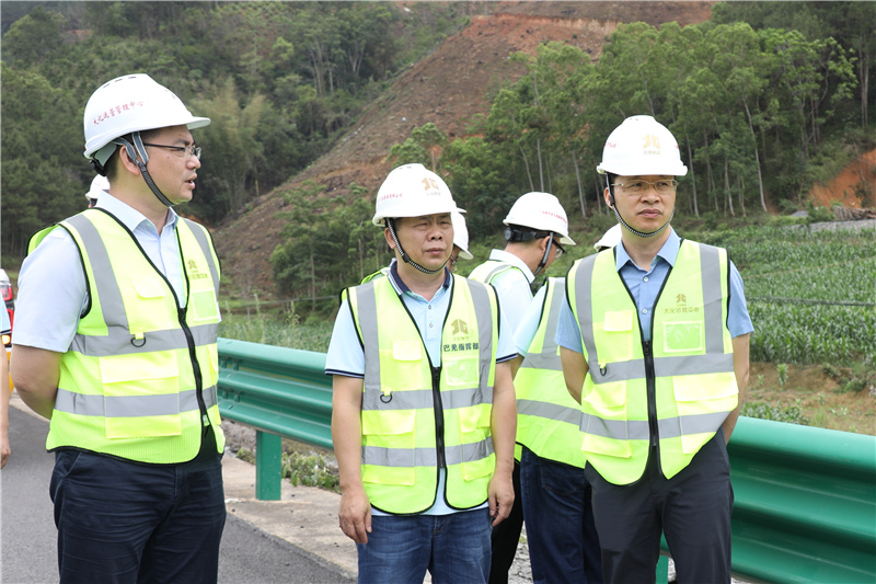 新發(fā)展交通集團副總經(jīng)理陽個小一行先后深入大化服務(wù)區(qū)、洪籌樞紐互通、都巴高速K547+300上邊坡等現(xiàn)場,實地檢查項目土質(zhì)高邊坡防排水、互通路基質(zhì)量等安全情況。